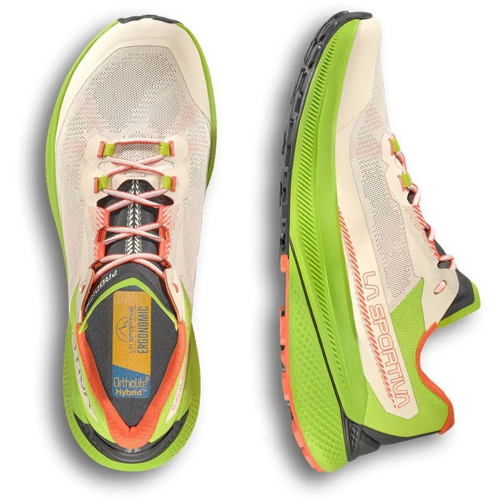 Las zapatillas La Sportiva Prodigio son un producto revolucionario dedicado al mundo Ultra Trail. Nueva espuma XFLow, diseñada y desarrollada para garantizar la máxima amortiguación y retorno de energía kilómetro tras kilómetro. Cada detalle ha sido diseñado para satisfacer las necesidades del ultra runner más exigente: la amplia puntera y la parte superior transpirable aportan comodidad incluso después de varias horas de carrera, la construcción Wrapping System y la perfecta ergonomía del talón aseguran estabilidad y protección mientras que la geometría del rocker enfatiza una zancada suave y progresiva en cualquier terreno.